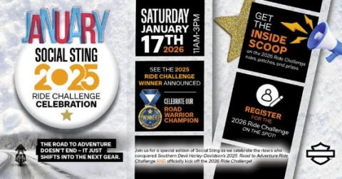 Join us for a special edition of Social Sting as we celebrate the riders who conquered Southern Devil Harley-Davidson’s 2025 Road to Adventure Ride Challenge — and officially kick off the 2026 Ride Challenge!
